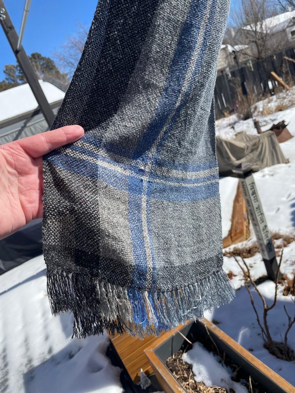 Classic color combination shows itself off in this one. Silk noil fiber is used to make this a three-season wrap which can easily be dressed up or down – think blue jeans, white t-shirt and this scarf. =)